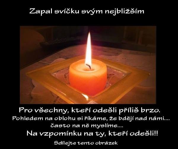 "Mít děti není samozřejmost. V běhu všedních radostí a starostí si to často neuvědomujeme. Zastavme se na chvíli. Zapalme svíčku a uctěme památku všech dětí a mladých lidí, kteří odešli z tohoto světa dříve, než stačili dospět a zestárnout…