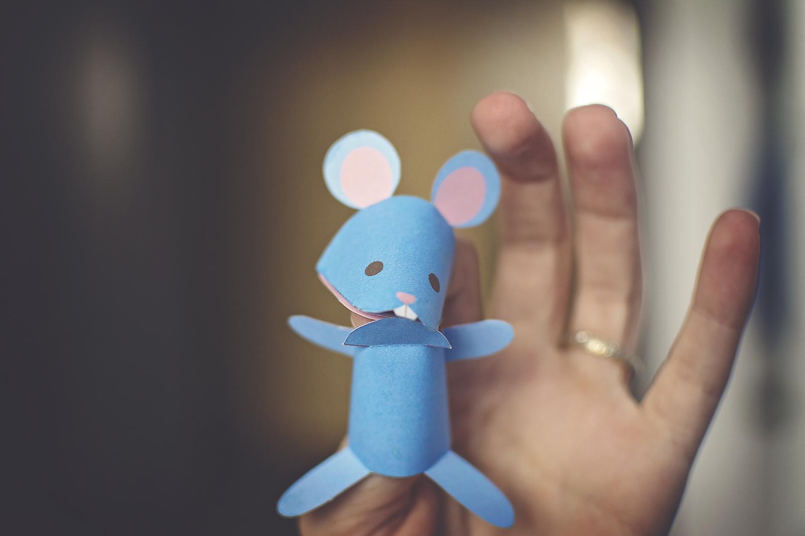Koník si pro nás přichystal nůžky, lepidlo, tužku, tři předtištěné zvířátk, ten sakra těžký balík papírů 😀 a krásnou myšku ♥.