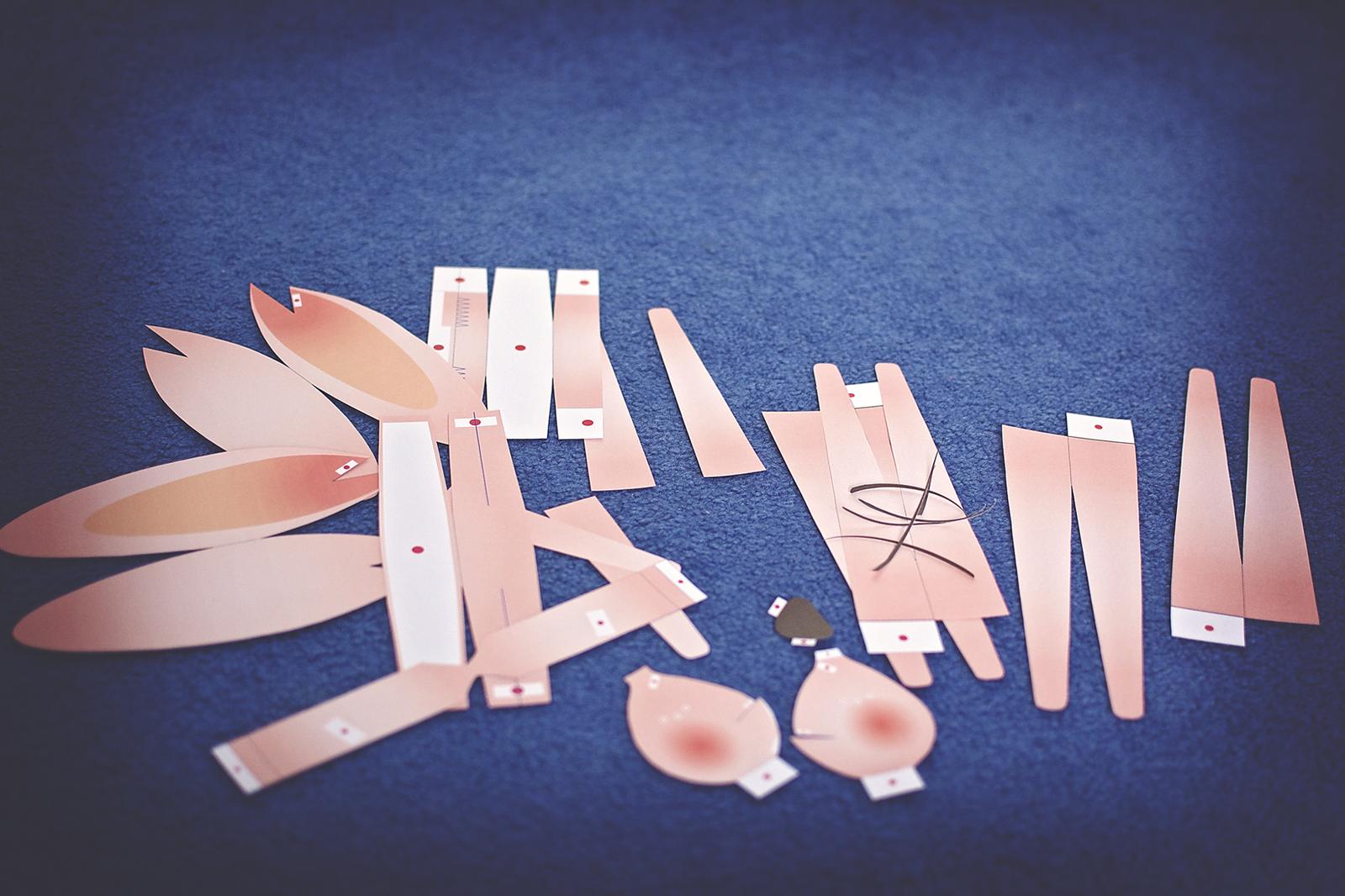 Testovací sada obsahovala 3ks natištěných modelů, 1ks poskládaného modelu myši, nůžky, lepidlo, tužku a 100ks lesklého papíru.