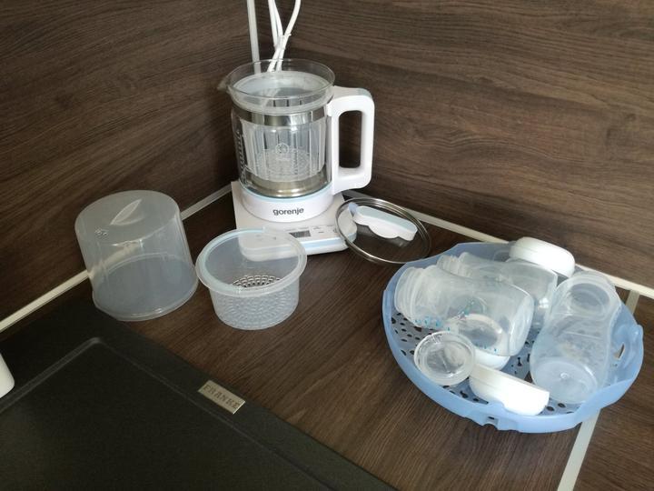 Sterilizaci využívám asi jako všechny maminky. Dudlíky teda nepoužíváme, ale lahviček máme dostatek, takže když začnu, konvice má opravdu dost práce. Tady mě teda trochu mrzí, že tam nedám více lahviček, ale tak nemůžu mít vše, že?! 😁