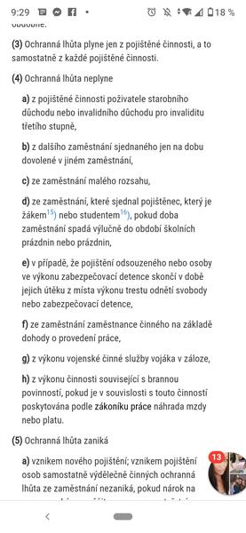 @hezz17 je to maličko jinak, ochranná lhůta , která popřípadě vznikla z toho původního zaměstnání se pozastavuje na dobu,kdy jsem zaměstnána jinde, tj to září a říjen , takže tyto dva měsíce neběží,a běží dál ta nevyčerpaná od listopadu. Jen spekuluju, jestli běží i v době nemocenské, nebo jestli je taky stopla,a běžela by dal po ukončení neschopnosti. Logicky bych totiž řekla, ze začne zas běžet od 1.11. ( už nezaměstnana) , ale ráda bych si to ověřila. Pořád mi není spoustu věcí jasných.