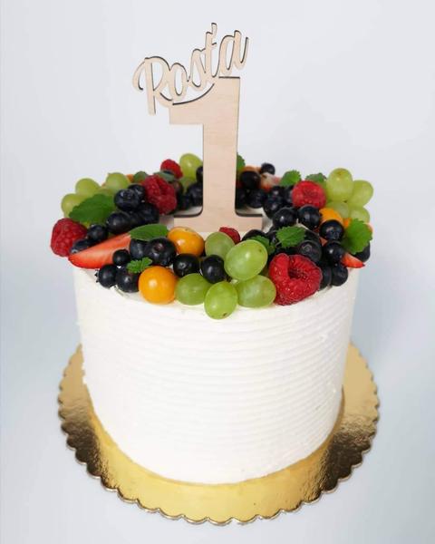 Já si nechala dělat od kolegyně - sice ráda peču, ale dorty moc ne a hlavně neumím moc dekorovat, meli jsme menší rodinnou oslavu, tak jsem chtěla, aby nějak vypadal. Byl to piškot s nějakým lehčím bílým krémem a hlavně se spoustou ovoce. Malý tehdy korpus v podstatě ochutnal, snědl jen to ovoce, což jsem předpokládala, tak jsem ani nechtěla, aby byl striktně "dětský" - bez cukru, bez mléka, bez lepku apod.