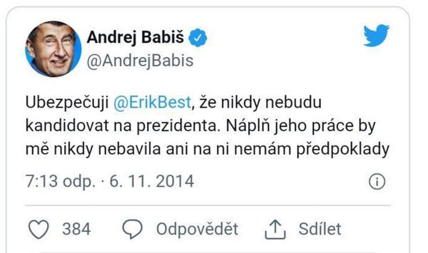 @klokanka31 asi takhle...když nevidíš agresi u AB co jeho vědomosti? Nezná ani základy. Příklad: v jednom pořadu Pavlovi řekl, že tu od 2.světové války byl v Evropě mír. Pavel mu odpověděl něco ve smyslu:"Co Jugoslávie?" A AB řekl, že mluví o Evropě. Jako promiň, ale prezident má být vzdělaný a AB nezná ani planety. To je fakt. A tohle má být prezident?