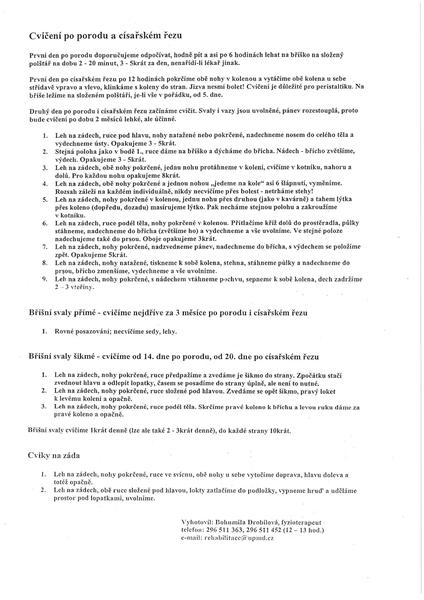 Hojte, seznam cvičení je ok.....den po císaři přišla paní na pokoj ...postavila se ke stěně a řekla...budete dělat to a to a to............... viděla jsem ji jako v mlze. Po týdnu jsem zjistila, že to fakt nebyl sen...... potvrdila mi to spoluležící😀 Každopádně z cviků jsem měla okno.