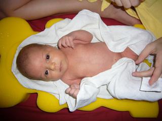 Porodnice je moc hezky udělaná, měli jsme tam pokoj s manželem sami pro sebe a kdyby jsme chtěli mohli jsme tam strávit všechny doby porodní. Místnost byla moc příjemně zařízená, byla tam i velká vana pro tišení bolesti a bylo mi i nabídnuto, že kdybych chtěla, mohla bych rodit v ní. Byli tam různé pomůcky, jako míč, masážní kolečko a pod. Během první doby porodní nás chodila kontrolovat porodní asistentka a párkrát i doktor. PA byla moc milá paní, která vždycky dobře poradila co mi zrovna pomůže, s manželem jednala, tak že vůbec neměl čas přemýšlet nad sebou a byl mi opravdu velkou oporou a to se bál jít k porodu. Poměrně často natáčeli miminko. Chtěla jsem rodit na křesle, tak jsme se na samotný porod přesunuli do vedlejší místnosti(taky příjemně zařízená). Rodil mě pan doktor a protože mimi bylo velké musel mi přijít pan primář hupsnout na břicho. Miminko mi hned dali na břicho(to je nádherný pocit) a pak nechali tatínkovi přestřihnou pupeční šňůru(před porodem říkal, že nic stříhat nebude a najednou držel v ruce nůžky a šmyk). Mimčo očistili a dali tatínkovi, který ho choval po celou dobu co mě šili. Pak jsme se přesunuli zpátky do místnosti, kde jsme byli pohromadě ještě dvě hodiny.