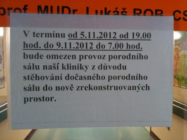 zdravím, byla jsme v pátek v Motole na poradně a stěhování+školení na nových přístrojích proběhne teď od úterý do pátku. Nejspíš tam bude trochu zmatek a omezený provoz, ale nachávají se snad 2 porodní pokoje na gynekologii, takže k úplné uzavírce snad nedojde. Jen by bylo asi dobré si tam předem zavolat, pokud byste zrovna jeli rodit v těchto dnech.