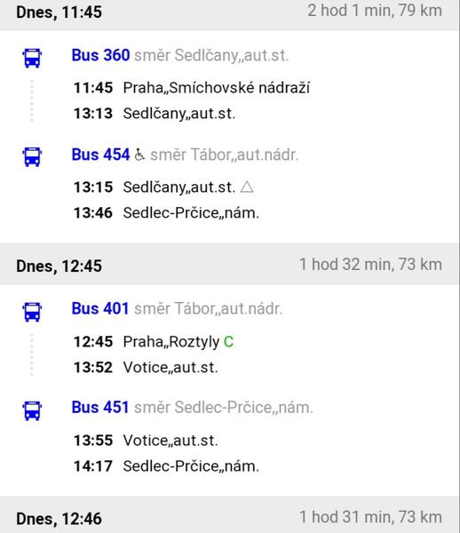 Jen namátkou z Idosu nejbližší spojení, jede to každou chvíli 😉. A bacha, je to TA Prčice, ne TY Prčice 😀