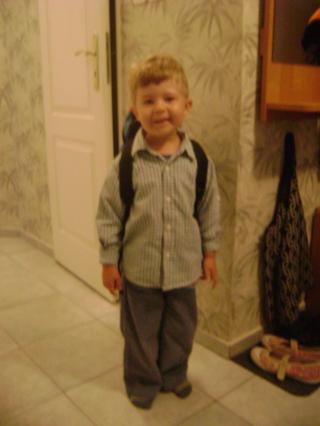 Ahoj holčinky, tak dítě už je ve školce. Ráno jsme ho budili, tak měl slzičky v očích, že ee, že se mu nikam nechce, ale za 10 minut už začal, "Já se tam těším, už půjdeme? Já se tady nudím" a tak jsme pak šli, dítě od nás odešlo a vůbec se neohlédlo. Zprznili mu na tabulce příjmení, má žlutý pruhovaný fusak s modrým letadýlkem, má to blbě v rohu, tak se tam těžko dostávám, ale jinak dobrý, hned tam vlítl, podal učitelce ruku, řekl, že se jmenuje Honzík a šup do herny. Chudák až si uvědomí, že tam nejsme, tak chudák učitelka, ale tak třeba to nebude tak dramatický, mám si pro něj přijít po desáté hodině, holky, tady je klid, najednou si nemusím hrát, nemusím lítat a můžu si dělat, co chci. 😀 😀 😀