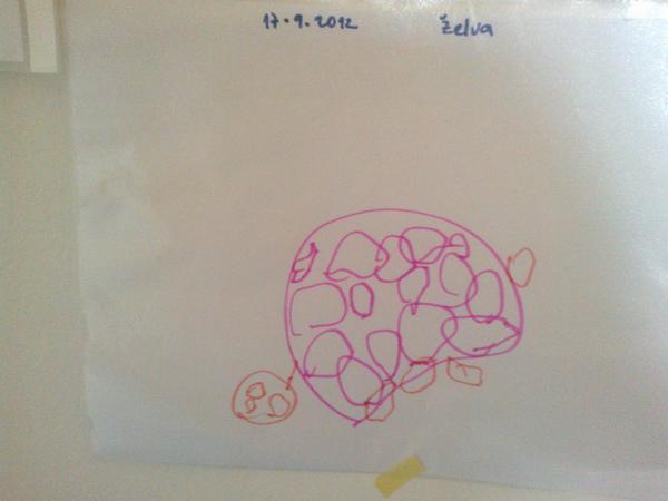 Danik malovani miluje snad uz od dvou let....to bylo poprvé takove vselijake slunicko,ale ted uz jede fakt krasne,i kolikrat sam,prinese ukazat co vymyslel a namaloval...tuhle prinesl ukazat zelvu nedavno,malem jsem spadla na zadek,...fakt dobry.Umi Panacka,housenku (tu se taky sam naucil),auto,slunicko,nekdy i strom,zelvu,autobus,oblicej s vlasama a přednedávnem se naucil medvěda.Jo a duhu,...Prikladam poslední vytvory