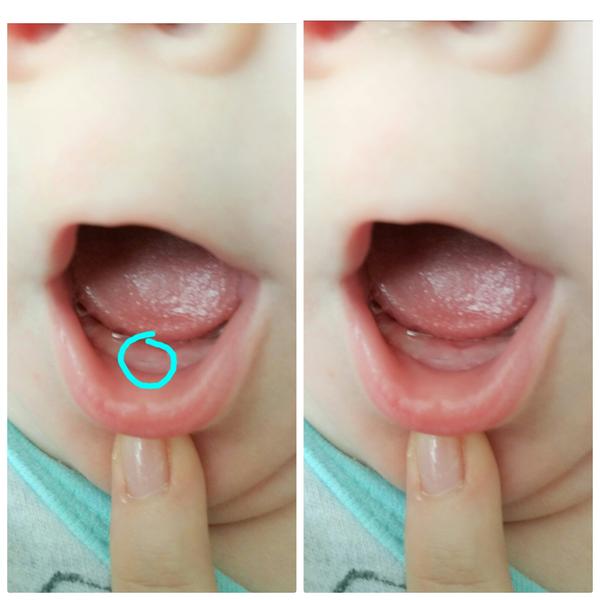 Je videt, ze se zoubky derou ven, ma uplne natekla dasnicka. Ale to muze trvat dalsich par mesicu. Pokud se ptas na to bile, za mne je to spise aft, nez zub. U zubu bys videla opravdu prurez, jak posila foto @simya. Sleduj v pusince, zda se ji neobjevi vice, pokud ano, uber ze sveho jidelnicku bile pecivo a sladke (pokud kojis).