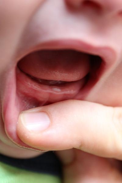 Malý to měl od malinka taky,ptala jsem se na to Dr. v poradně a řekl mi, že se mu to hezky zatáhne ....a taky, že jo, první zoubek pak vykoukl v 8 měsících 🙂