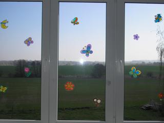 gina: to je taková černá kontura na fólii, jak je na okna a my to vybarvili 😉 a pak po zaschnutí přenesli na okna(samodržící) 🙂