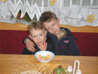 matova: neboj ty druhý děti se snaží dělat to co ty první 😉základ je, aby byl Šimonek dobře naučenej, ten mladší ho bude napodobovat ve všem 😉 Mára je opak Lukáška, ale ve spoustě věcí se snaží být stejnej 😀 a uvidíš, že se budou mít rádi 😵Mára mi přestal sedět v židličce, sedí na rohovce u stolu jako Luky a vyleze si tam sám a sleze taky 😀 teď spolu snídaj a něco si tam šuškaj, když tam přijdu, tak ztichnou a smějou se, kujou pikle 😀