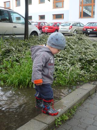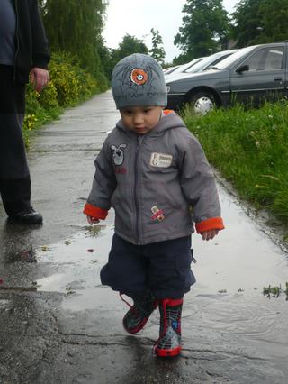 dnes mě ale překvapil 😕 ..už se hrnul do kaluže v normálních botkách,tak jsem řekla,že ne ne,že může jen v gumáčkách skákat v kalužích a on...se podržte...poslechl!!! 😨 😲 a kaluž objel!!! 😲 😀 ...no nemám já to zlatíčko 😉 😵 .