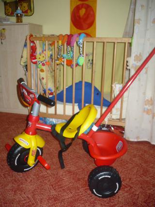 ined: to je perfektní tříkolka 😵 Hlavně, že má tu vodící tyč, to by se Adélce taky líbilo. Momentálně ji tahám u mamky po dvoře v dětské tatrovce na špagátě 🙂 Kolik taková tříkolka stojí? Kolo u nás dobrý, ale jako na nějaký dlouhý trasy to není, to už je pak protest 🙂