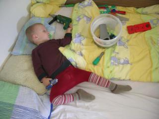 Když mi dá v noci 3-4h spánku, tak jsem ráda. Někdy to je dokonce jen hodina ☹ Vzbudí se v postýlce, sedí, kňučí nebo rovnou dost brečí. Nic jiného by nepomohlo - beru si ji rovnou na postel do pracovny. Někdy to šlo a docela zabrala, ale většinou se mele a válí z jedné strany na druhou bez přestávky, naráží do čela postele, do stěn, do mě, celé hodiny.. A takhle to jde až do rána. Já samozřejmě už spát nemůžu, jen ji narovnávám, hladím, uklidňuju a když už bych zabrala, ona začne brečet na dudlík.