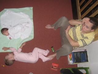 A malinká, zlatučká to je, opatrujem ju stále nosením inak plače, do toho veľmi málo na svoj vek spí, ešteže si akotak zvykla na rozlíšenie dňa od nocí- vnoci už toľko nekukučkuje, a cez dň? niekedy jeden 3 h spánok, niekedy dva dvojhodinové a to je všetko 😒 . Pripadám si ako blbec s nespavými deťmi. Šimon by aj spal ale nevie zaspať a malá asi ani veľmi nechce, alebo je taká kľudná že jej stačí nosiť a podriemkavať,...neviem, ale v porodnici už sa moje spolubývajúce smiali že ako ona čumákuje stále a nespí 😕 😲. Spomínam si keď mi ju raz tam doniesli o hodinu skôr na izbu, že si s ňou nevedia rady, a to oni sa nekašlú s tým že deti nechajú vyrevať. Tak je to aj u nás doma, kým šimona neuspím, ona plače hoci je u muža na rukách, keď mi ju vráti na ruky tak stíchne. Na jednej stramne je to krásne, na druhej toto som nechcela, lebo takto je človek ako otrok, nevládzem už. Aby to nebolo až také čierne, mama moja mi na to povedala: čo chceš, včšak malá ti aspoň raz cez deň spí, mne rasťo (brat) nespal od bábatka celý deň 😀 😀 😀 tak je to , človek už aby sa len zasmial, treba vydržať, len silu a nervy potrebujem nové. A teraz si predstavte moju domácnosť 🙄 😝 😝 😝 🙄 No comment 😀 😀 😀 😀 .