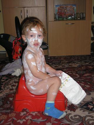 Pak zalištovával kabel od satelitu, stál na židli, Kika si dotáhla do chodby velkou židli, vylezla si na ní, stála vedle něj a říká mu - Tatínku hapáš - pořád dokola. Vzhledem k tomu, že mu to moc nešlo, tak pěnil rychle - musela jsem pomocníka uklidit z dosahu. A čmajzla mu Šoubovák a vrtala mu s ním do Kufžíku 😖 😖 Pak ho šla vrátit a nesla ho hrdě - prej Pomáát tatínkovi a maminkovi 😀 😅