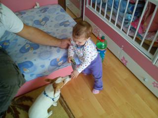 dobre ranko vam,tak som si konecne precitala aspon nieco od zaciatku a tak podla prchalky mozem posudit ze katka robi to iste co je corizo robila takze tym padom nam fakt asi idu zubky,asi niake stolicky,kedze nam uz od zaciatku isli skoro zubky mozno aj teraz idu skorej stolicky alebo niake ine,tuto noc som bola si 7 krat hore z tho o 6 00 som dala malej kasu a spala do 8 30 😀 ale tak uz som si niako ako tak zvykla len som chcela vediet pricinu ze preco sa uz nech tak nahle zmenilo to spanie lebo ona spala uplne krasne do 11 mesiacov,no a to ako si kuse palce s dasienkami mi tiez pripada ze to budu fakt niake zadne zubky,nemyslite?Narodeniny boli krasne tak behom dna vam sem dam fotecky.Inak uz sa blyzia vianoce,tesite sa?Ja za 48 hodin letim na slovensko a uz sa neviem dockat,dufam katka bude poslusna ako vzdy 😀