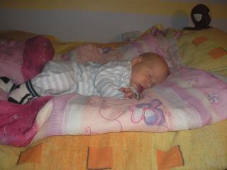 To samé se opakuje i při spaní ve dne. V postýlce vydrží spát tak 3/4h, pak se posadí a brečí, beru ji opět k sobě, kde si to celkem už pak v klidu dospí, ale dnes se převracela taky.