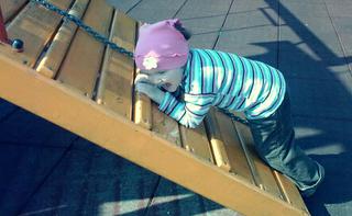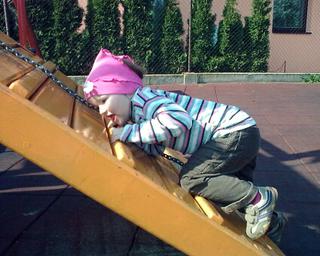 Tak jsem jí udolala ve 13h. Byly jsme venku snad 2,5h, prochajda a hřiště. Potřebovala to, páč vstávala v 7h! Pak hodím foto, jak lezem umělecky na skluzavku 😅 Cestou domů jsme potkaly jednu mladou paní - učitelku ze školky a nabízela mi hlídání! Nemůže sehnat práci, no jako každej.. Říkala mi 30 Kč na hodinu 😨 Já celýho 2,5 roku nečekala na nic jinýho, než aby se objevil někdo, kdo by občas pohlídal..
