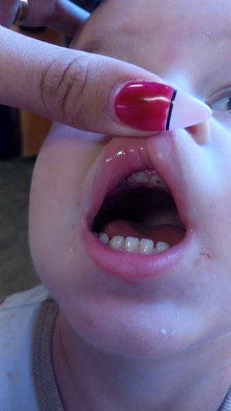 @monkey1986 myslilm,ze je to z kazu-treba to bylo kridove bile (to je kaz) a pak se to ulomilo,kaz neni vzdy tmavy, proto sis toho treba nevsimla. Ty prijdou bohuzel pryc a u takhle maleho ditete bude na zvazeni zhotoveni mezerniku,aby se naucil mluvit.Jeste zminim #leiladelly, aby se taky mrkla.