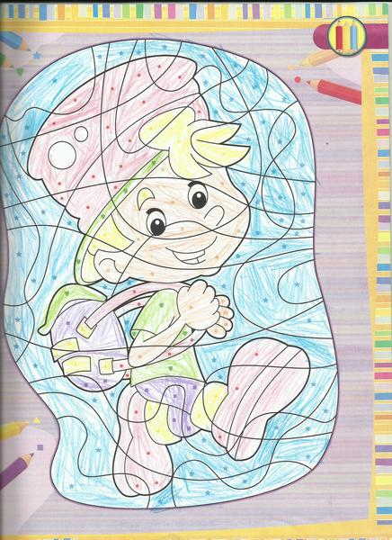 Jinak tady včerejší výtvor, v malování a ve vybarvování se fakt hodně zlepšil, furt ted leží v časopisech a něco maluje, vybarvuje, spojuje, stříhá a lepí 😅