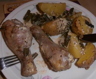 dnes: krevetový koktejl, utajená kuřecí "kýta" s játry a pórkem s hranolkami a dezert cheesecake a margot řezy. měli jsme návštěvu, vše moc chutnalo... 😉