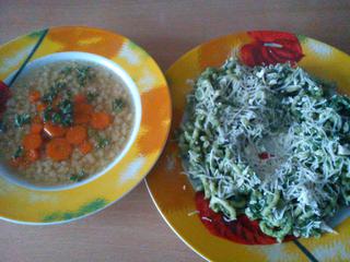 dneska máme vývar hovězí s nudličkami a nudle se špenátem a smetanovo-nivovou omáčkou 😀