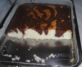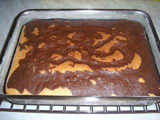 Na buchtu z majolky potřebujeme jednu malou majolku ve skleničce, dvě vejce, které si rozdělím na žloutky a bílky. Bílky nejprvé ušlehám a nechám stranou. Do žloutků přidám vanilkový cukr a mixují, postupně přidávám moučkový cukr, asi 12 lžíc, jednu malou majolku ze sklenice. Sklenici od majolky pak použiji jako odměrku na mléko, a přidám do těsta celou malou sklenici polotučného mléka, dále pak 24 lžíc polohrubé mouky, a jeden kypřící prášek do pečiva. Všechno nechám pořádně vyšlehat v mixeru. Nakonec lehce vmíchám ušlehané bílky. Do vymazané formy, a vysypané hrubou moukou naleji světlé těsto, nechám si půlku těsta, abych do něj přidala dvě lžíce kakaa a rozšlehala ho. Tmavé těsto pak naleji na světlé těsto. Buchtu peču v elektrické troubě 40 minut při 150 stupních C.