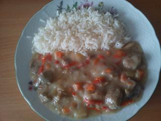 a dnes Krůtí prsa v paprikové omáčce s těstovinami.
