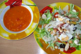 Dneska cézar salát 😀 a pro malou na večeři rajskou polívčičku s nočky 😀
