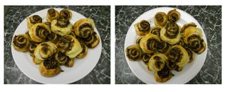 @yesu rozválíš listové těsto,rozpustíš čokoládu aspoň 50% potřeš s ní těsto,rozmixuješ ořechy a posypeš,zamotáš a je hotovo 😉