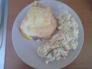 dneska máme řízek pod peřinkou a bramborový salát a večer budeme opékat párky nad ohněm 🙂