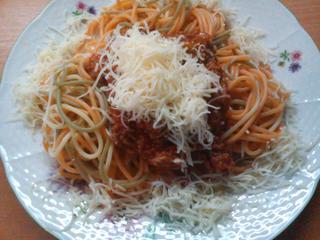 Joo, a nedavame to teda synovi. Pripada mi, ze mnozstvi cesneku by mu neudelalo dobre, a to chilly taky ne. Kdyz ma spagety s nami, tak on ma suche nebo s nejakou detskou bolonskou omackou...