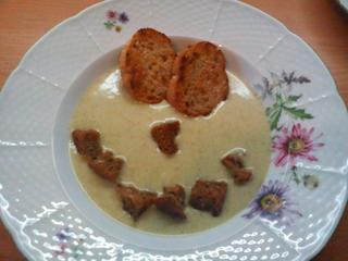 dnešní mňam Brokolicový krém, a špagety s boloňskou omajdou a strouhaný koláček