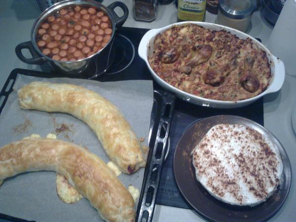 My dneska guláš, odpoledne upeču tvarohovej meruňkovej koláč a večer ještě udělám na zítra sekanou.
