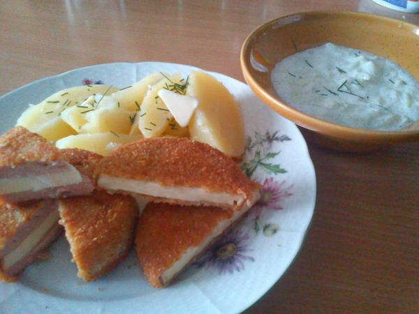 Já mám dneska totální kopr. M měl být celý den pryč, tak jsem si říkala že se nějak odbudu. Ale volal mi, že přijede na oběd, takže jsem z mrazáku jen vytáhla soukenické řízky a k tomu naškrábala brambory. Ještě že mám nějaké obědy v mrazáku pro tyto chvíle 🙂