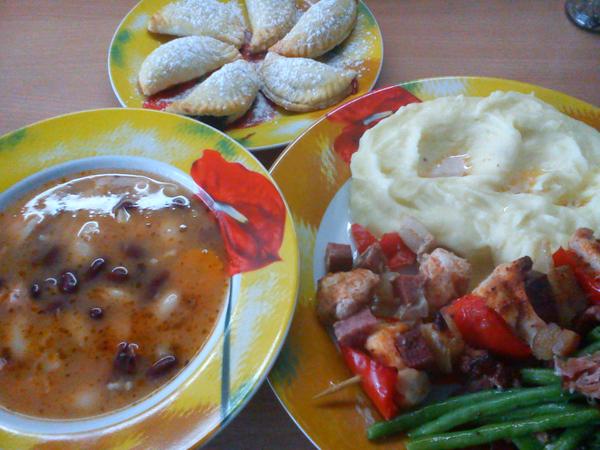 u nás "jen" hustá polívka ze zeleninky, červené čočky, vloček..a ne večeři budou květákové placičky s bramborem a zeleninový salátek
