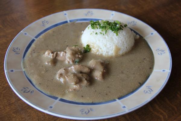 hovězí vývar, kuře na paprice a trhanec s jahodama...