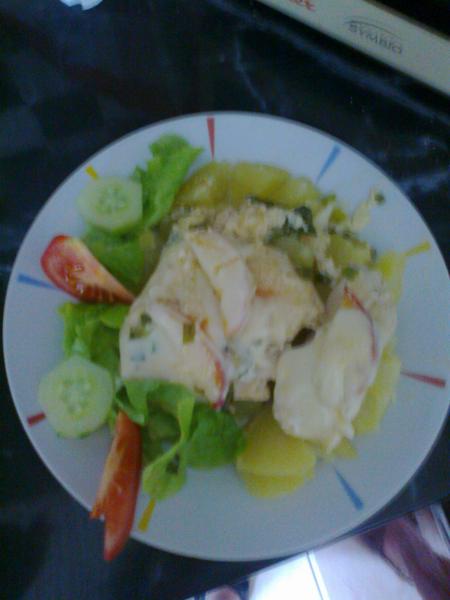 tak jsem si dala jehněčí játra na červeném víně s opečeným bramborem 🙂 manžel měl nějaký fazole na víně s klobáskou a malej špagety 🙂