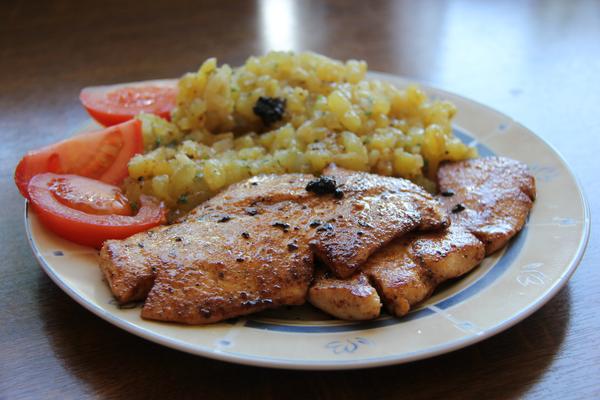 My dnes meruňkové knedlíky a na snídani byl hrkhrk krém s piškoty a zítra si dáme kuřecí játra na cibulce s rýží 😉