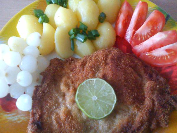 bramboráky napůl z brambory a napůl z cukety (jen na chuť) a sekanou, jako přílohu asi jen salát