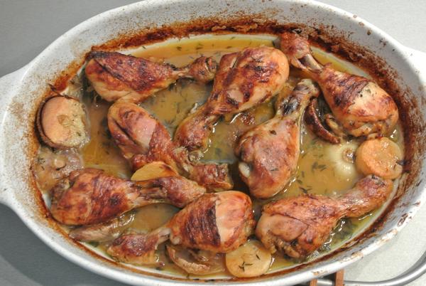 kuře pečené s brambory a zeleninou, rajčatový salát