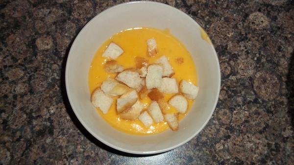 U nás dnes na oběd dýňová polévka s opeč.rohlíkem, kynuté knedlíky s borůvkama