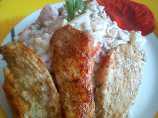 dneska čočkový salátek s fenyklem a kuřecí přírodní řízek🙂