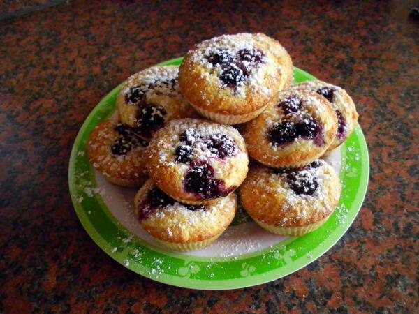 120g měkkého másla ušlehat se 120g cukru, potom zašlehat 1 vejce a 300g zakysané smetany. V druhé misce smíchat 250g polohrubé mouky, 2 1/2 lžičky prášku do pečiva, 1/2 čajové lžičky sody, špetku soli. Tuto sypkou směs přisypat do první misky a vmíchat jen chvíli než je vše vlhké. Naplnit formu nebo košičky a nahoru vmáčknout maliny. Péct ve vyhřáté troubě (asi 180st) dozlatova.