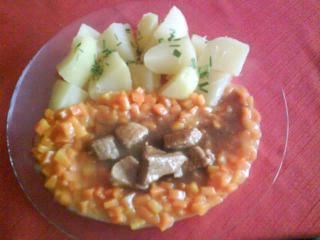 Dneska babiččina mléčná polévka, a dušená mrkev nový brambor a telecí masko