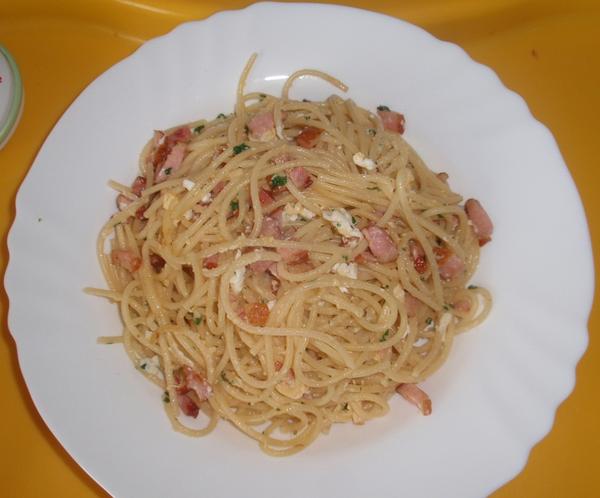u nás dnes špagety Carbonara a polévka z červené čočky.