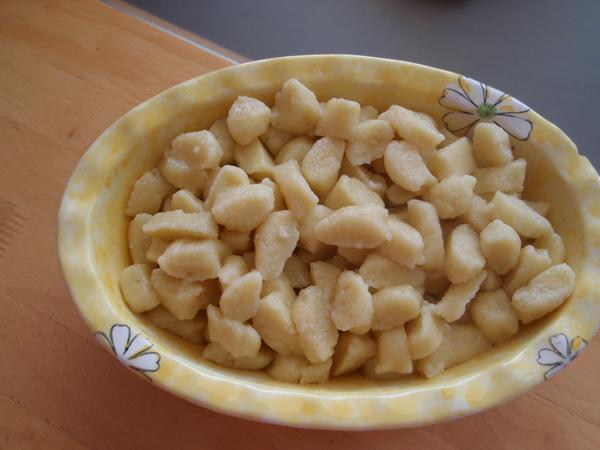 Brambory uvaříme ve slupce, ještě horké je oloupeme a necháme vychladnout. Pak brambory nastrouháme na jemno, osolíme a spolu s moukou vypracujeme středně tuhé těsto. Pracujeme na silně pomoučněném vále. Těsto rozdělíme na stejně velké kousky, ze kterých vyválíme tenké placky. Placky opečeme z obou stran dorůžova a uchováme na teple.